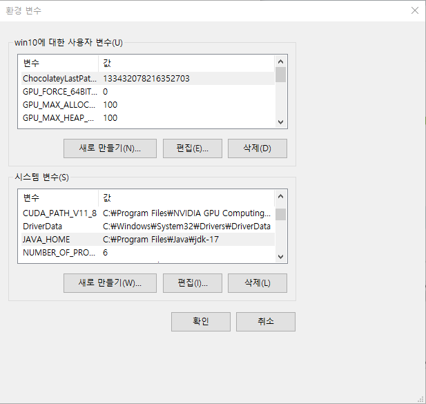 시스템 변수 추가 JAVA_HOME 값C:\Program Files\Java\jdk-17\bin