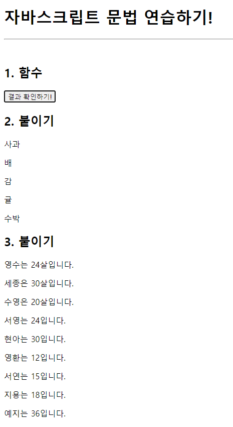 let fruits = ['사과', '배', '감', '귤', '수박']