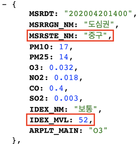 // 미세먼지 데이터 리스트의 길이만큼 반복해서 하나씩 개발자 도구에서 보기