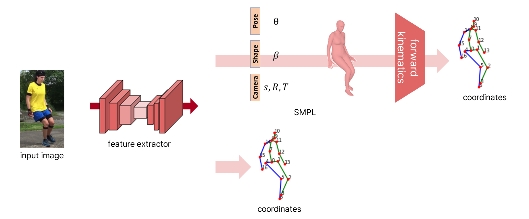 입력으로 이미지를 받고, Feature Extractor(ex. ResNet, Hourglass)가 입력 이미지에서 강하게 드러나는 feature를 Feature Map으로 추출한다.
