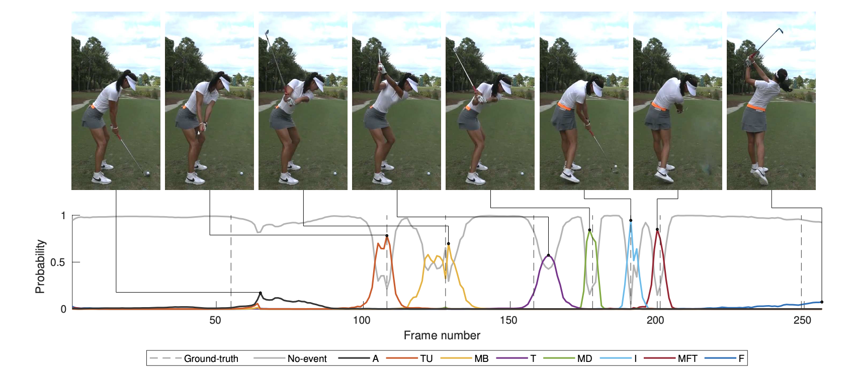 실제 Michelle Wie 선수의 스윙 동작을 input으로 넣었을 때 얻은 확률값들이다.