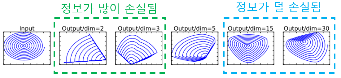 manifold of interest 양수이면 ReLU를 통과할 때 자기 자신을 반환한다 (정보 보존)
