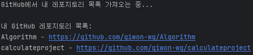 System.out.println("\n내 GitHub 레포지토리 목록:");