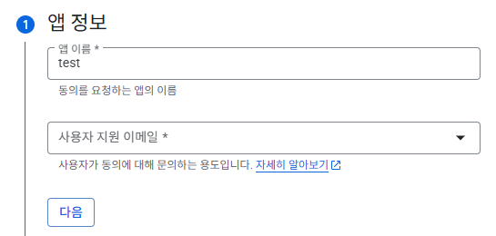 앱 이름, 이메일 작성 후 다음