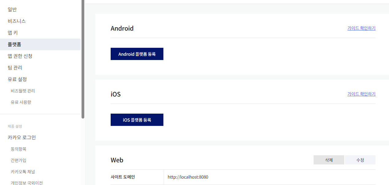 좌측 메뉴 → 플랫폼 → 웹(Web) 등록