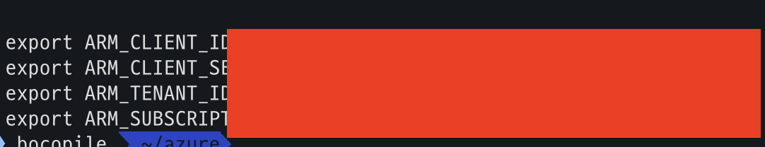 echo $ARM_CLIENT_ID $ARM_CLIENT_SECRET $ARM_TENANT_ID $ARM_SUBSCRIPTION_ID