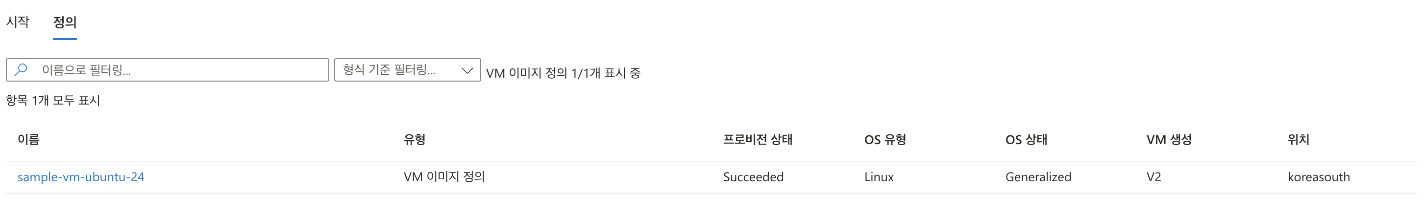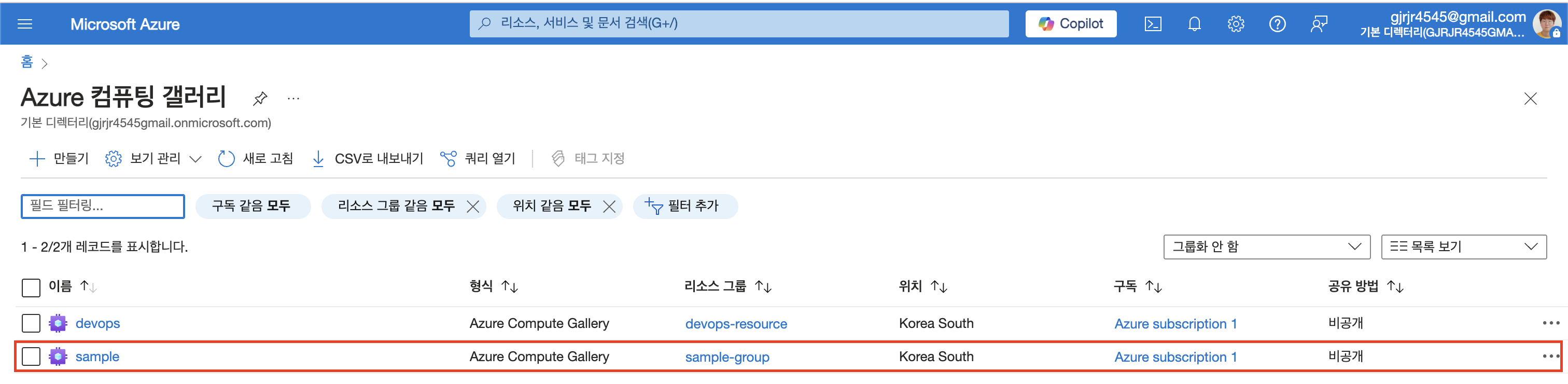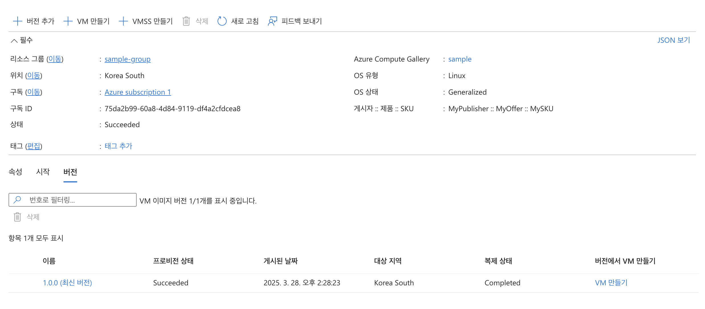 해당 명령어를 실행하면 Azure Compute Gallery에 다음과 같은 이미지가 정의 된다.