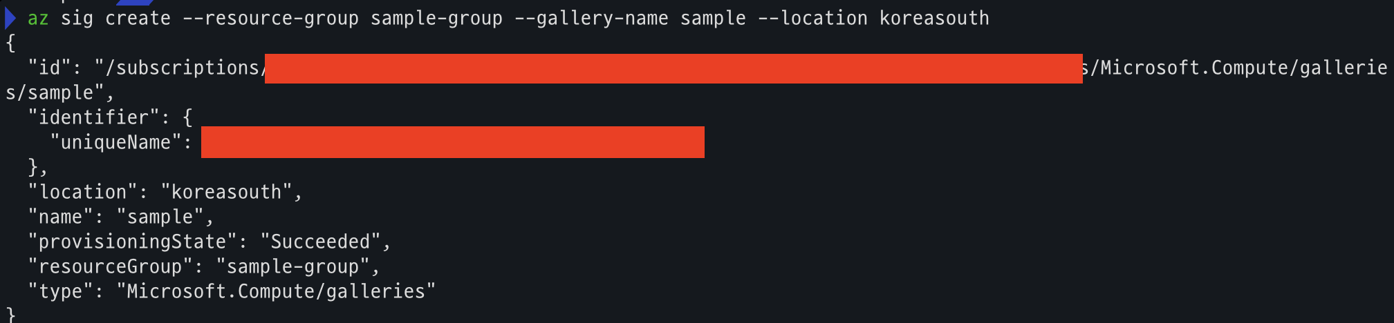 az sig create --resource-group sample-group --gallery-name sample --location koreasouth