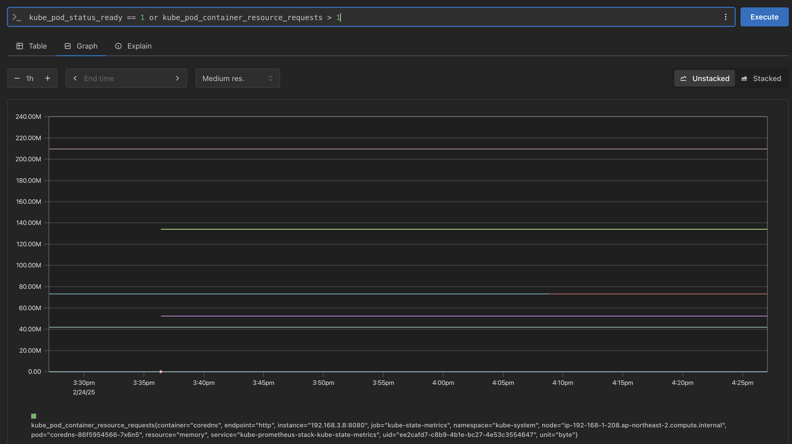 # 특정 노드(인스턴스) 필터링 : 아래 IP는 출력되는 자신의 인스턴스 PrivateIP 입력 후 Execute 클릭 -> Graph 확인