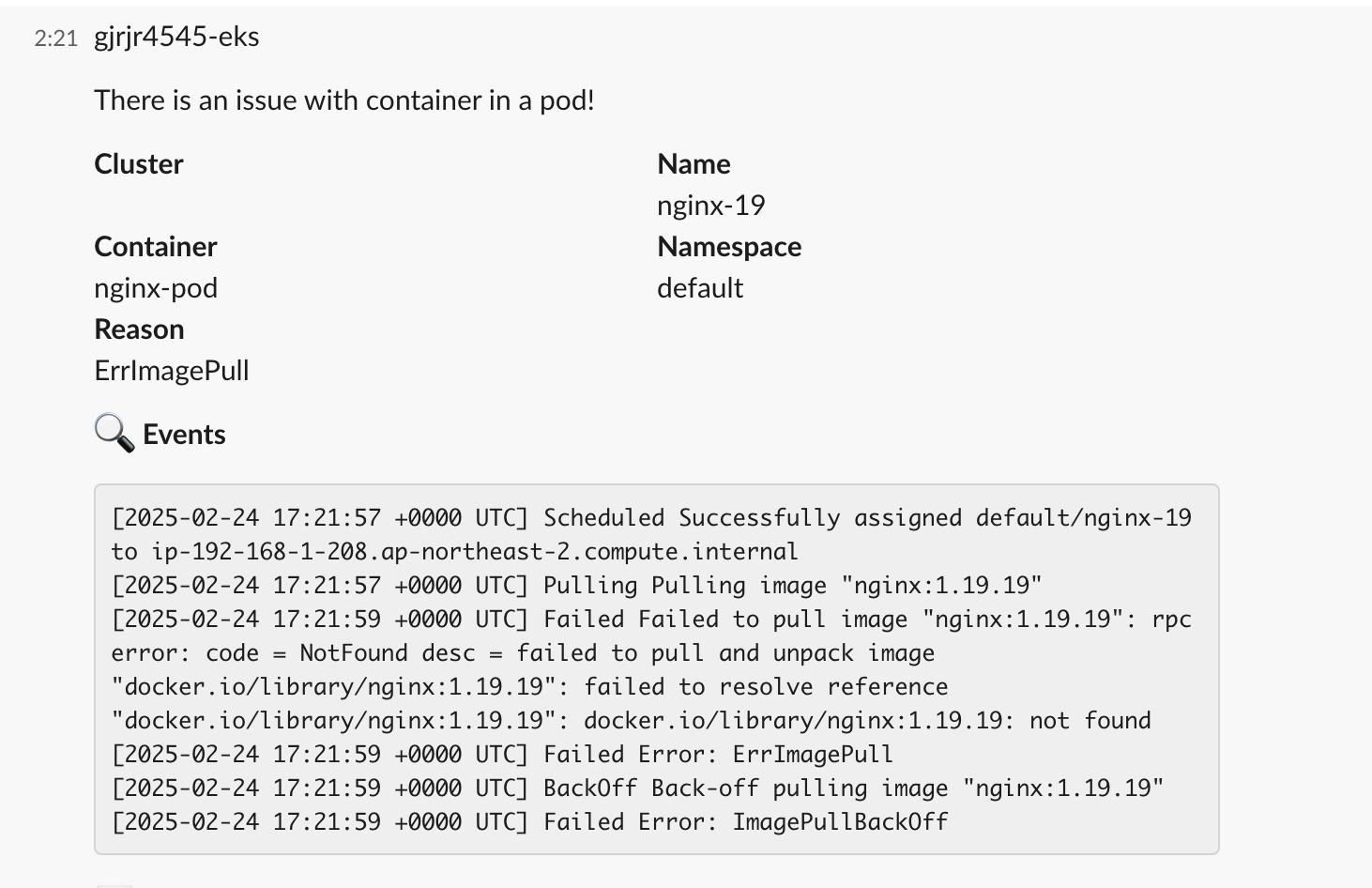 image: nginx:1.19.19 # 존재하지 않는 이미지 버전