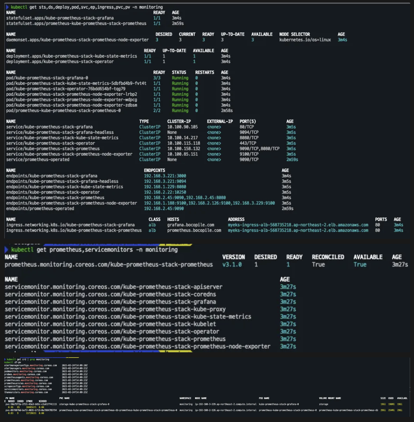 watch kubectl get pod,pvc,svc,ingress -n monitoring