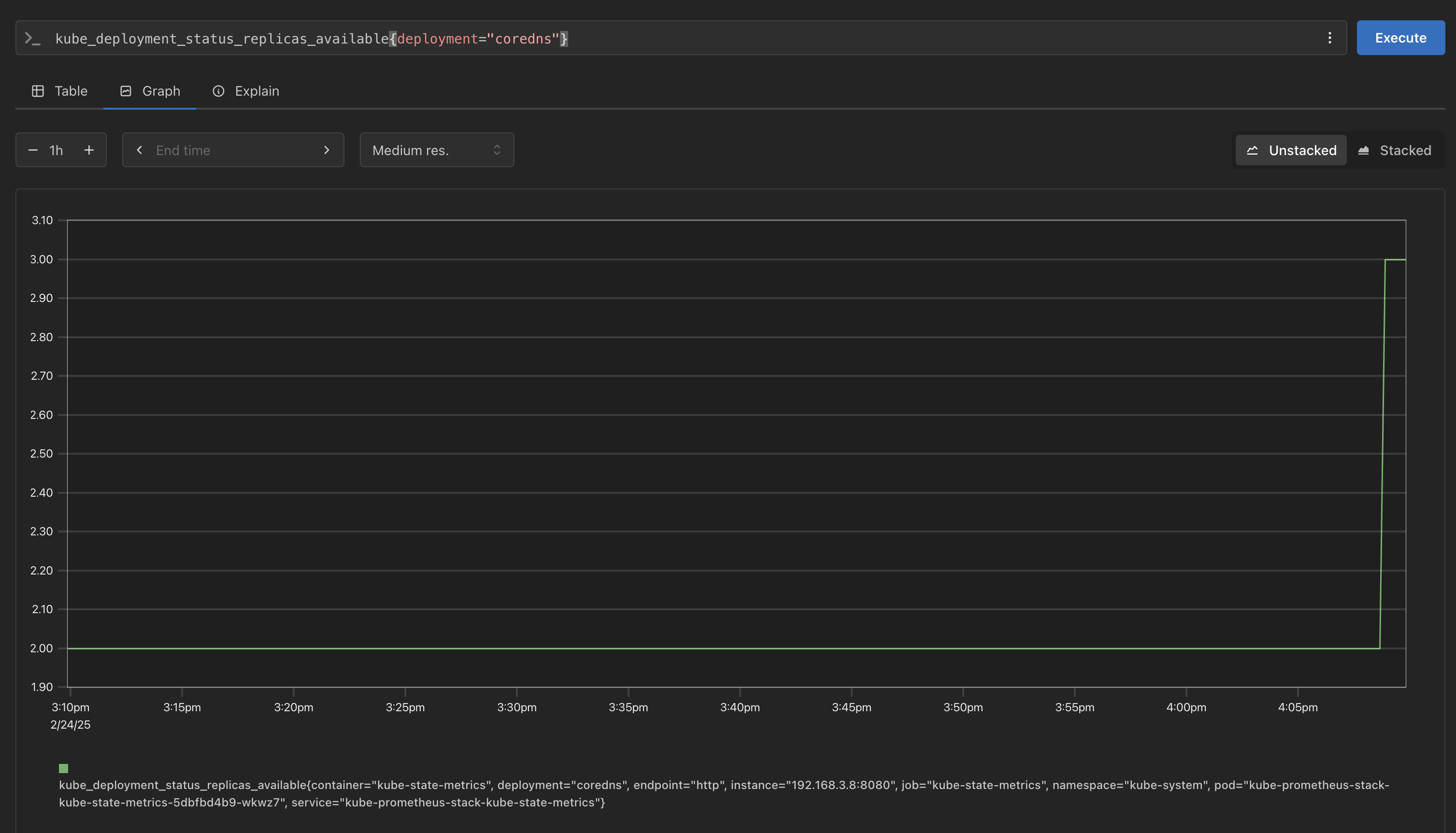 kube_deployment_status_replicas_available{namespace="kube-system", deployment="coredns"}