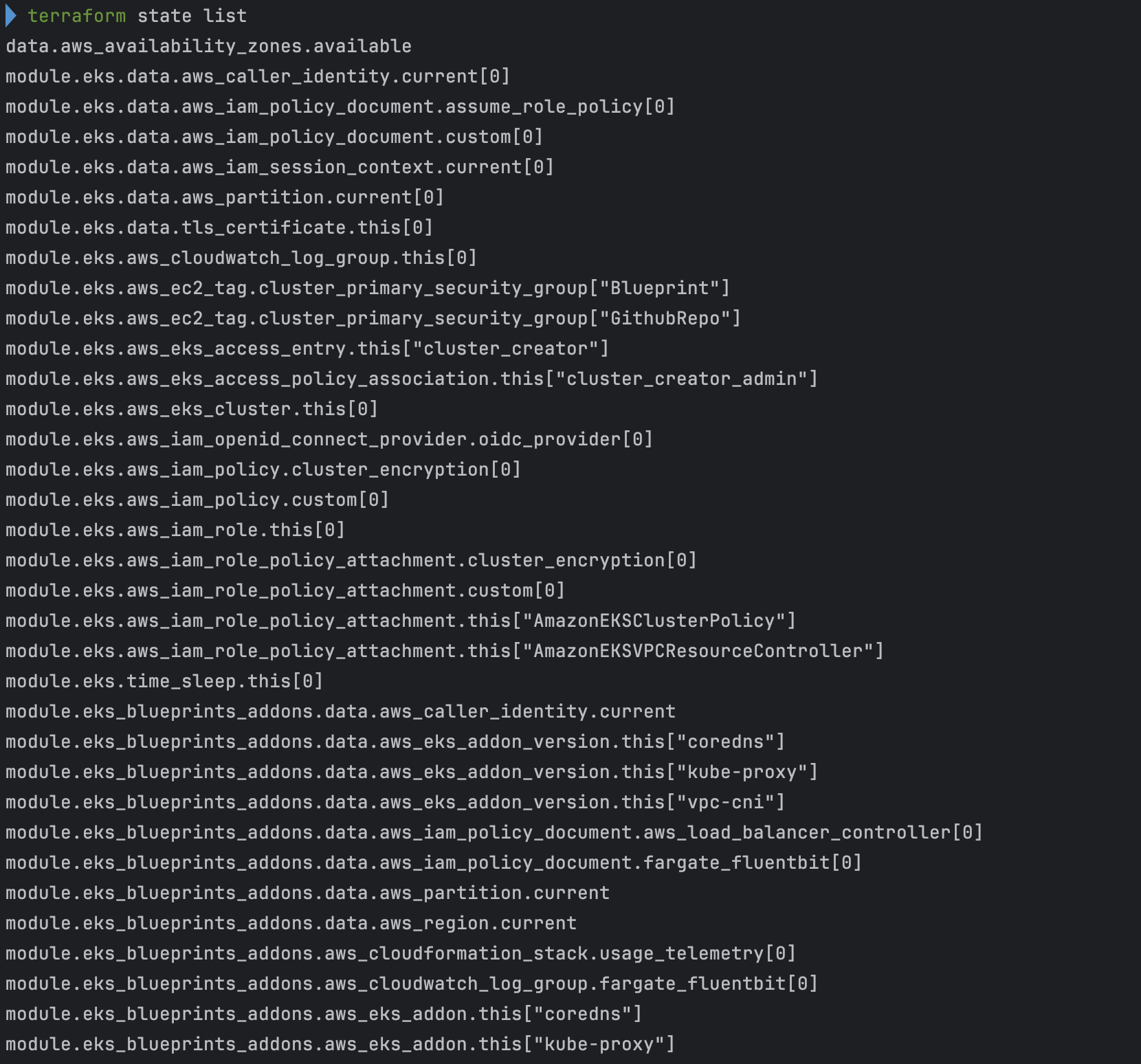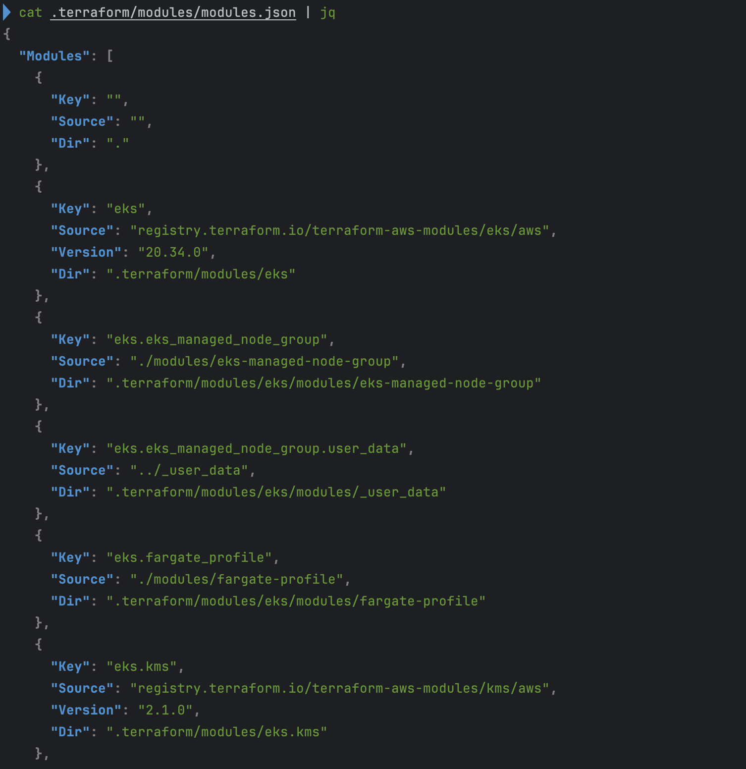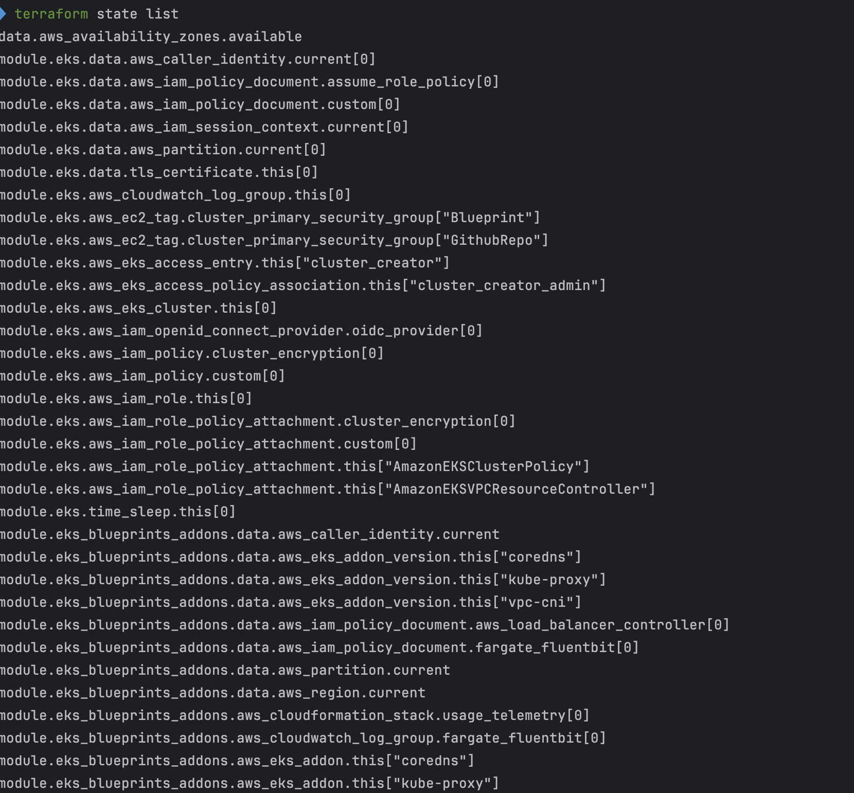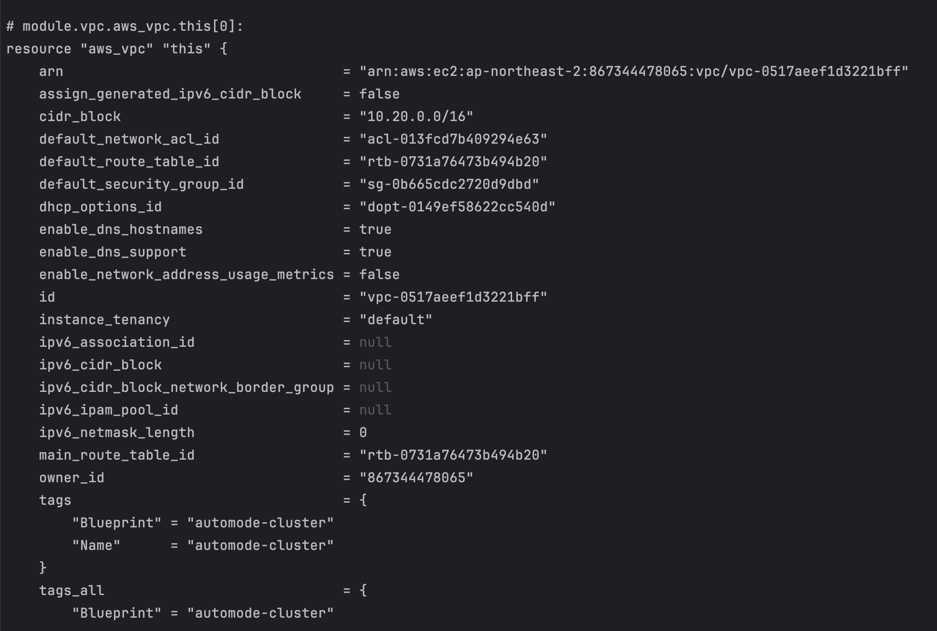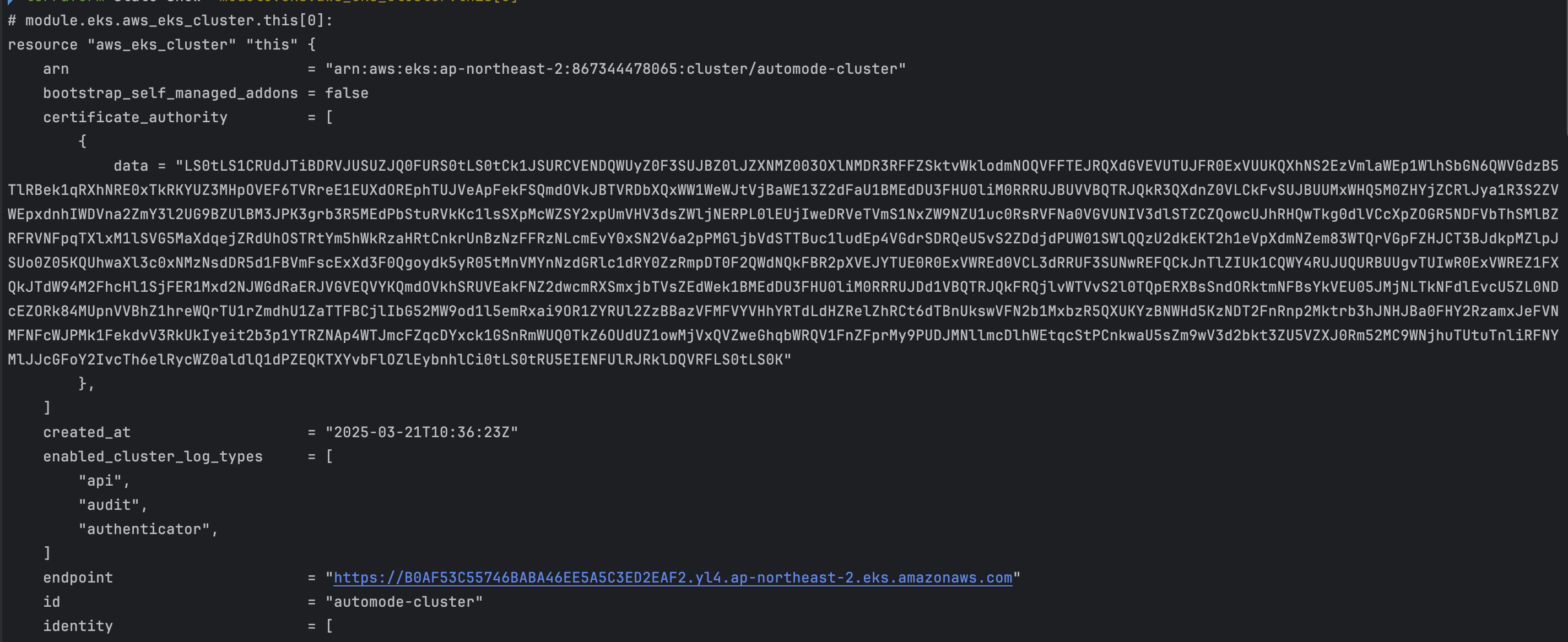 terraform state show 'module.eks.aws_eks_cluster.this[0]'
