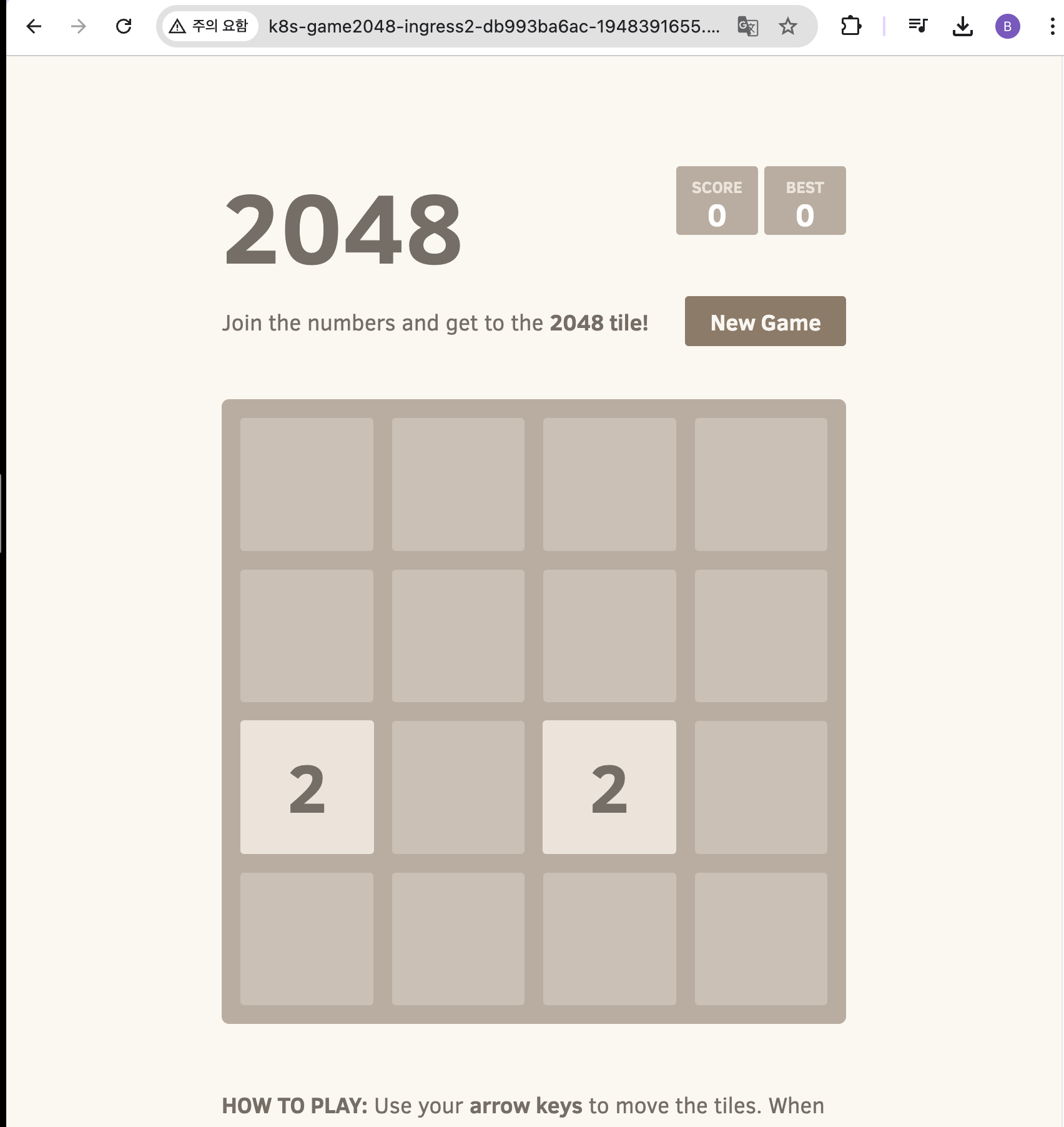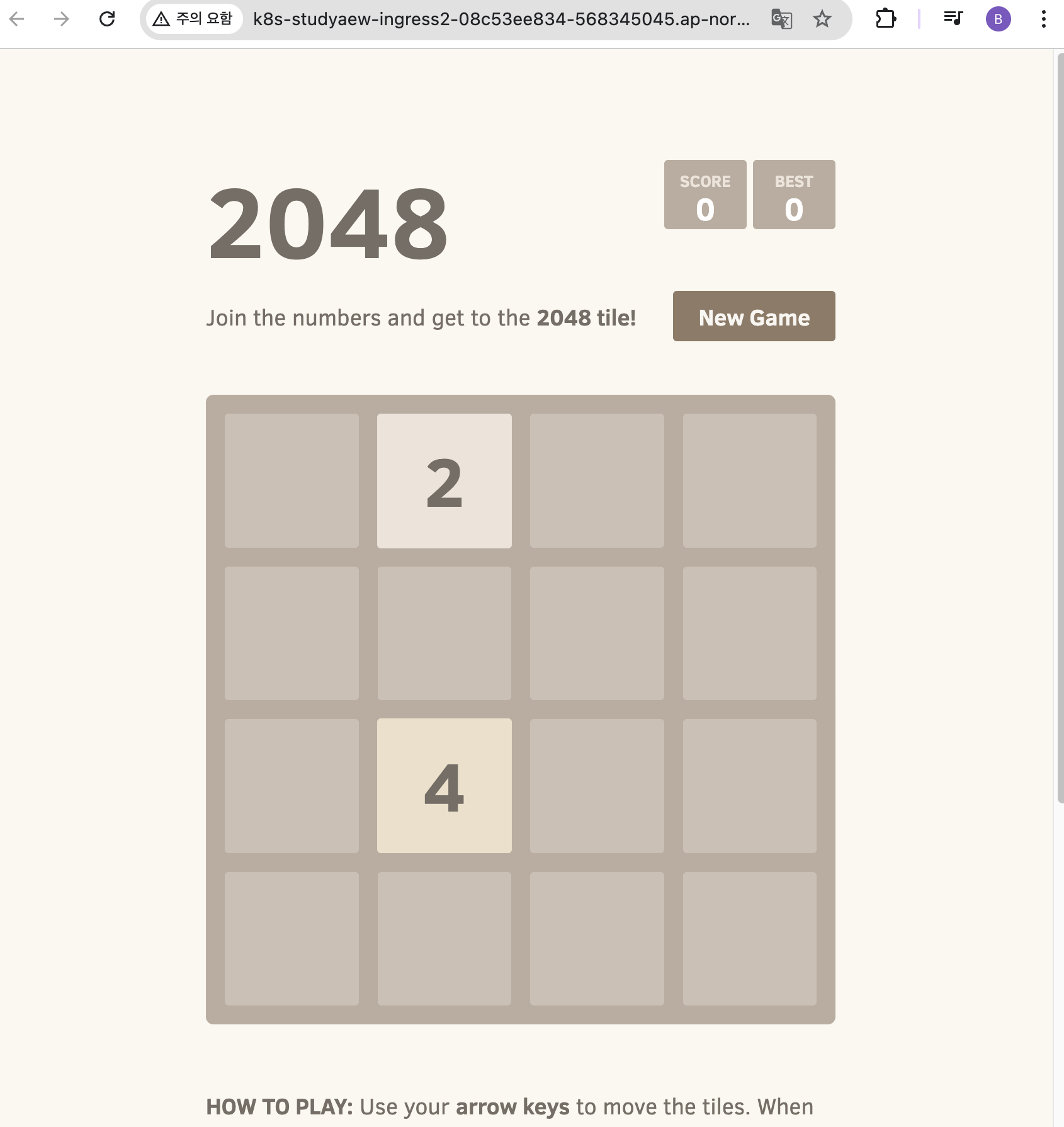 k8s-game2048-ingress2-db993ba6ac-782663732.ap-northeast-2.elb.amazonaws.com