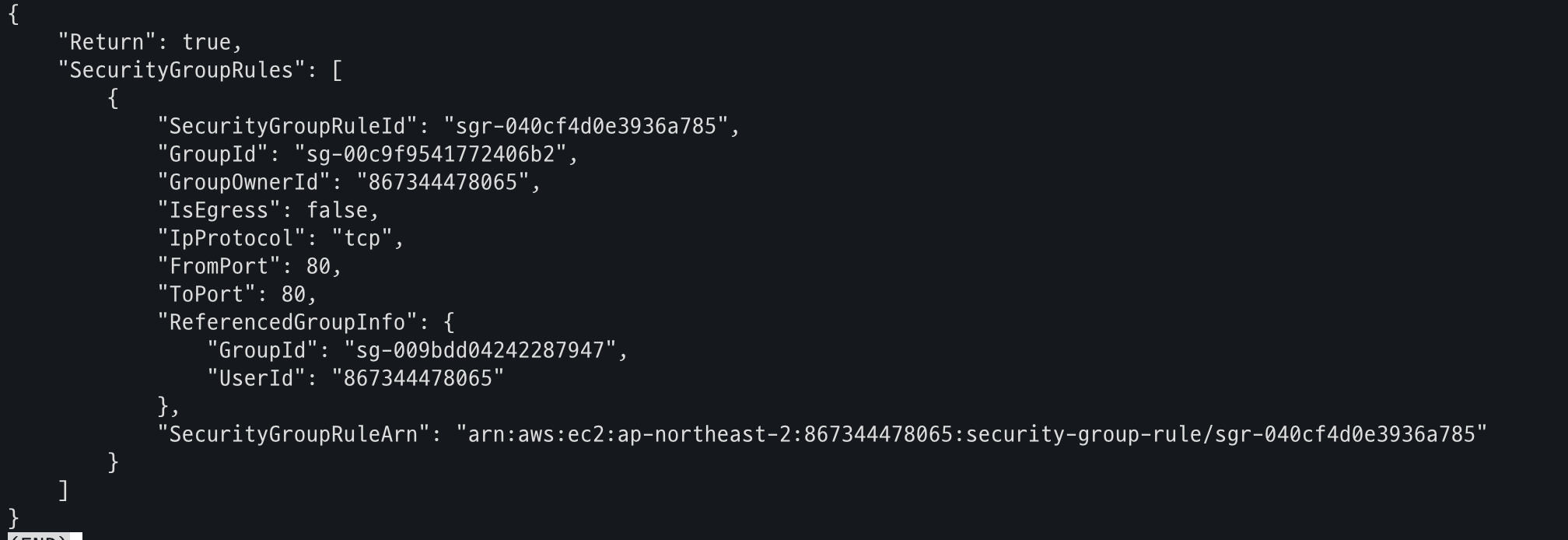 echo $ALB_SG $EKS_SG # 해당 보안그룹을 관리콘솔에서 정책 설정 먼저 확인해보자