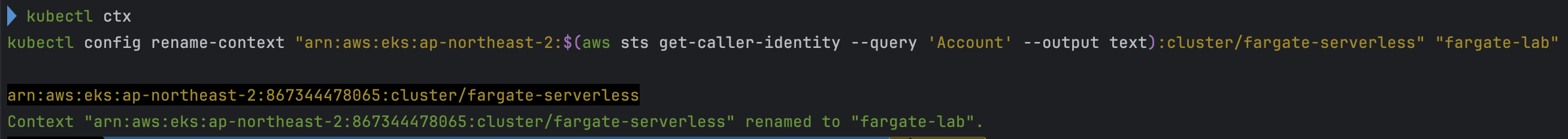 kubectl config rename-context "arn:aws:eks:ap-northeast-2:$(aws sts get-caller-identity --query 'Account' --output text):cluster/automode-cluster" "automode-lab"