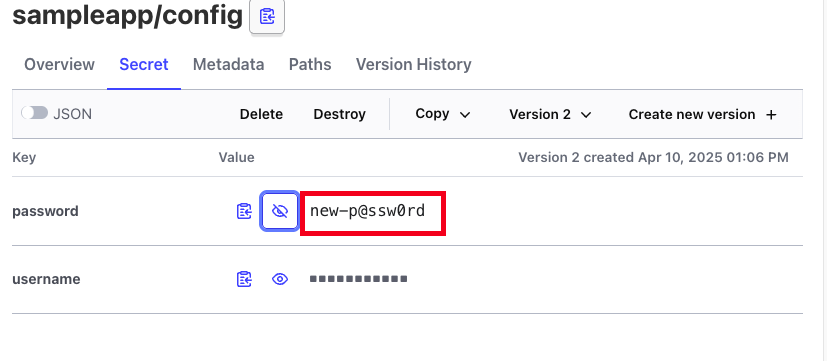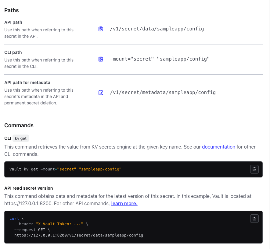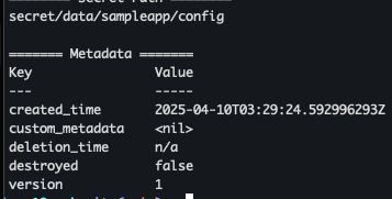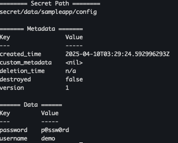 vault kv get secret/sampleapp/config