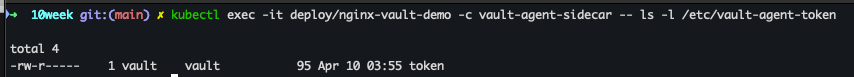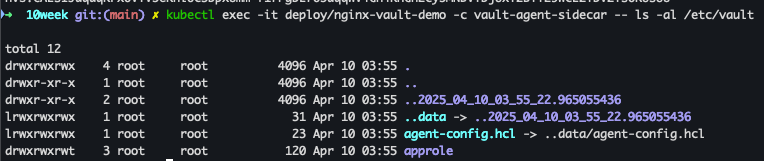 | Vault Agent Init Container | 최초 Vault 인증 및 토큰 발급 담당 |