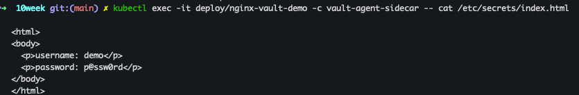 | Secret Injection | 시크릿이 /vault/secrets 등의 경로로 마운트됨 |