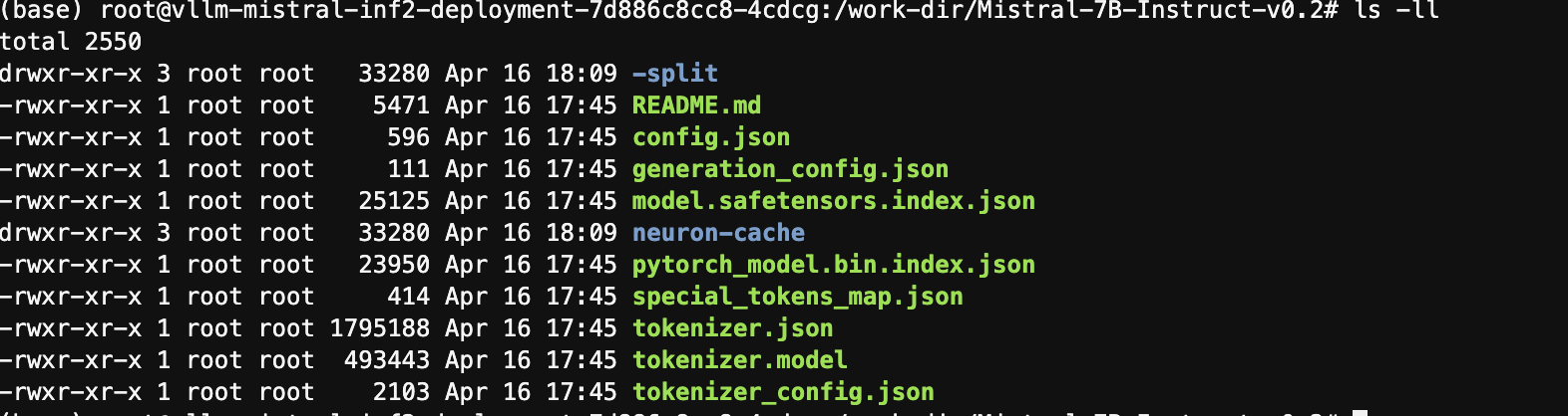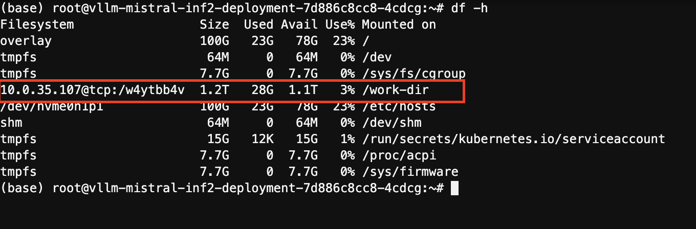 kubectl exec -it vllm-mistral-inf2-deployment-7d886c8cc8-4cdcg -- bashdf -h