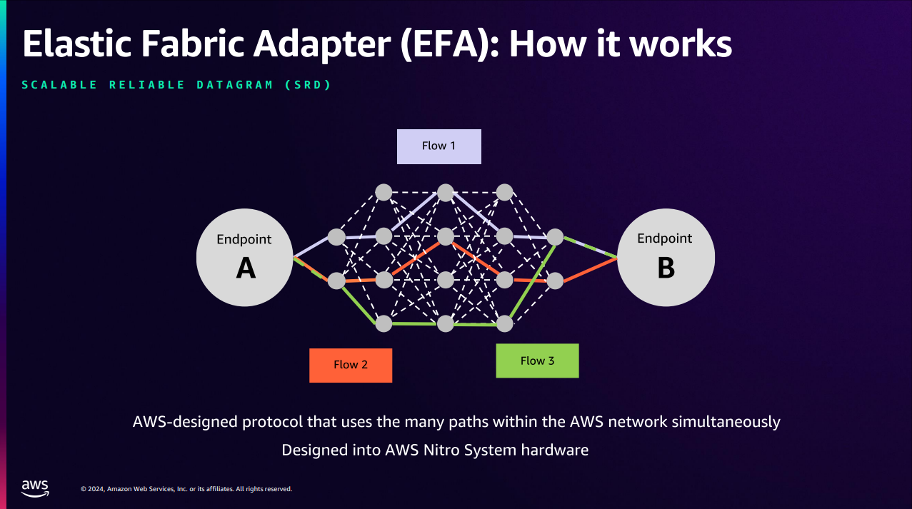 AWS는 GPU 간 고성능 네트워크를 위해 EFA(Elastic Fabric Adapter) 를 제공합니다.