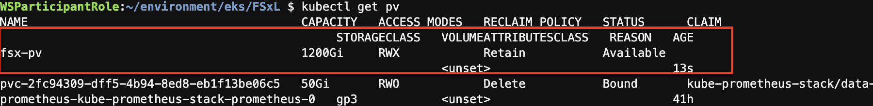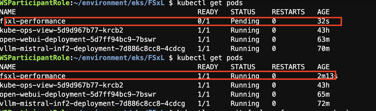 cd /home/ec2-user/environment/eks/FSxLkubectl get pods