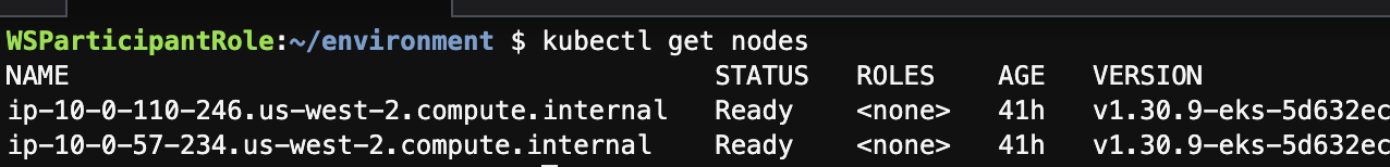 aws eks update-kubeconfig --name $CLUSTER_NAME --region $AWS_REGIONkubectl get nodes