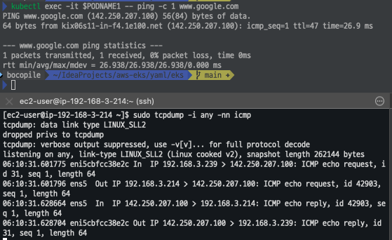 kubectl exec -it $PODNAME1 -- ping -c 1 www.google.com