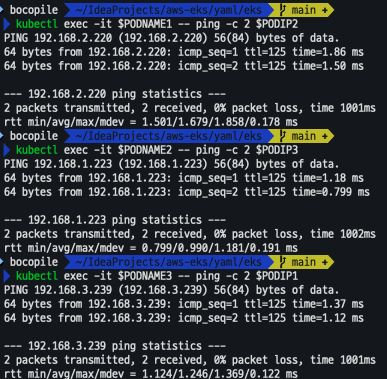 kubectl exec -it $PODNAME2 -- ping -c 2 $PODIP3