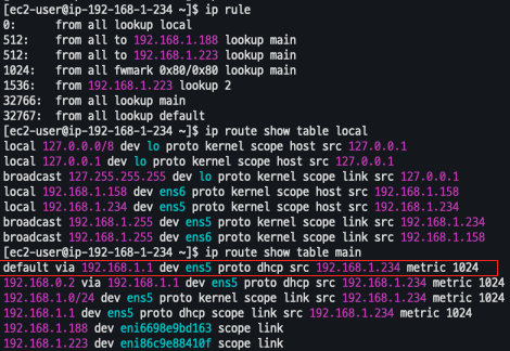 # 디폴트 네트워크 정보를 **ens5** 을 통해서 빠져나간다