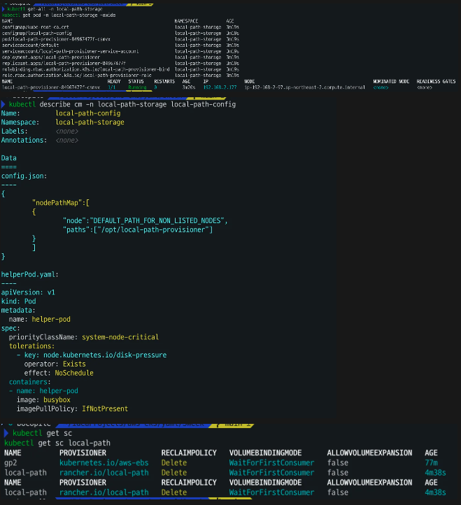 kubectl apply -f https://raw.githubusercontent.com/rancher/local-path-provisioner/v0.0.31/deploy/local-path-storage.yaml kubectl get-all -n local-path-storage