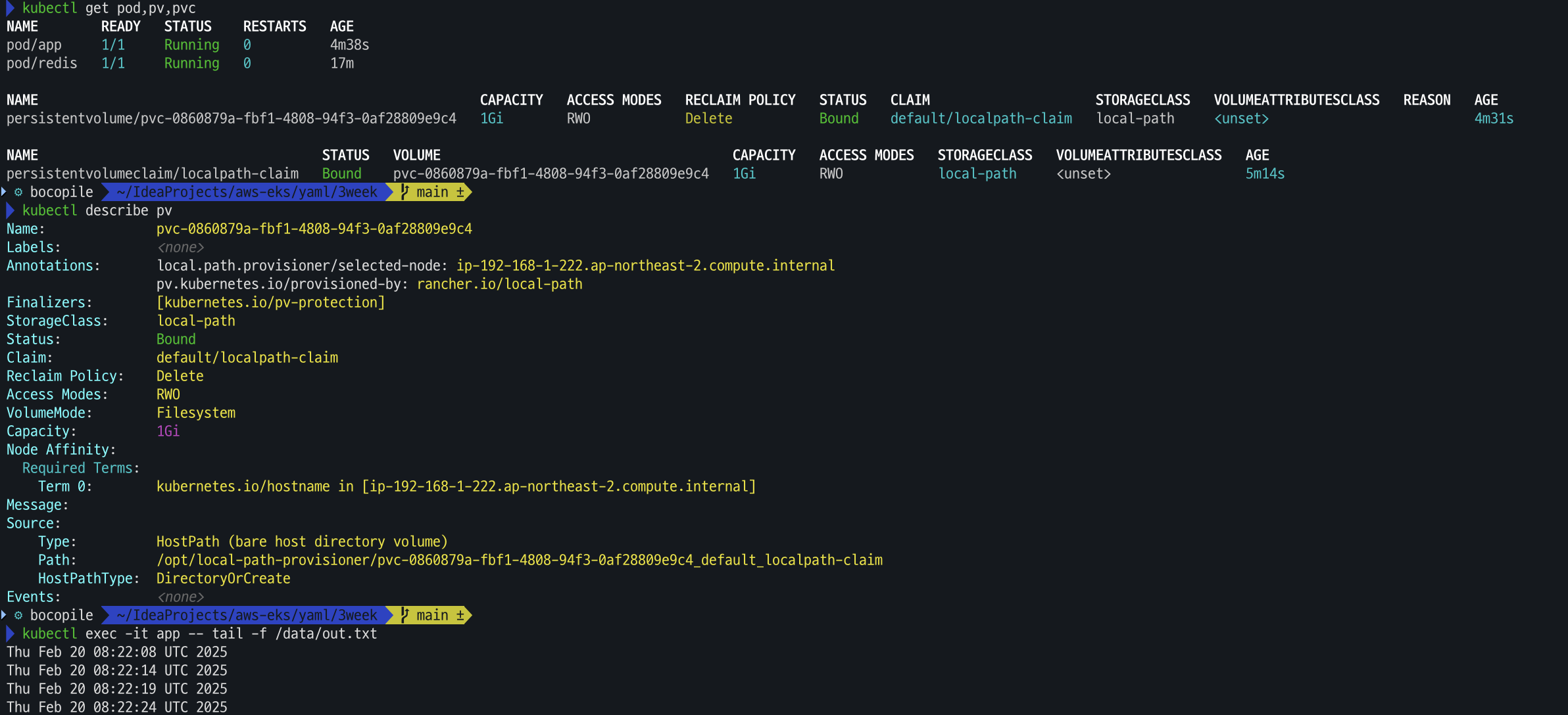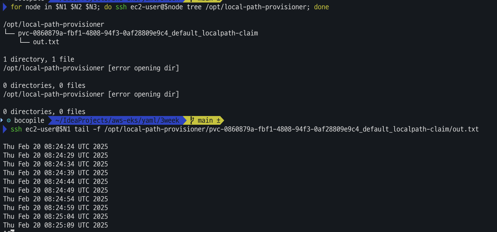ssh ec2-user@$N1 tail -f /opt/local-path-provisioner/pvc-0860879a-fbf1-4808-94f3-0af28809e9c4_default_localpath-claim/out.txt
