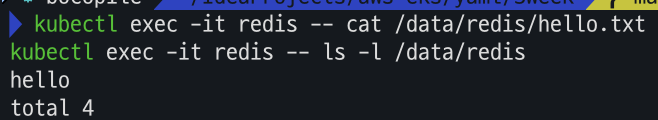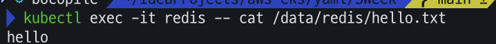 kubectl exec -it redis -- cat /data/redis/hello.txt