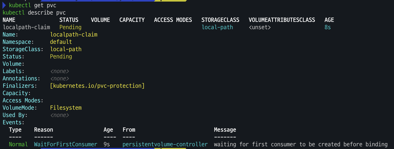 kubectl describe pvc
