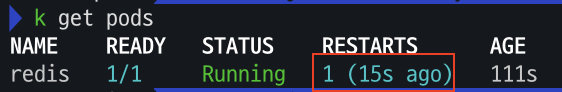 # redis 프로세스 강제 종료 : 파드가 어떻게 되나요? hint) restartPolicy