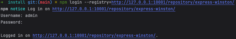 npm login --registry=http://127.0.0.1:10001/repository/express-winston/