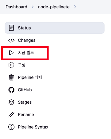 그리고 나서 해당 화면을 새로고침 한 뒤 다시 보게 되면 지금 빌드 매뉴가 있던 자리에 아래와 같이 파라미터와 함께 빌드라는 매뉴로 변경이 되는 것을 확인할 수 있다.