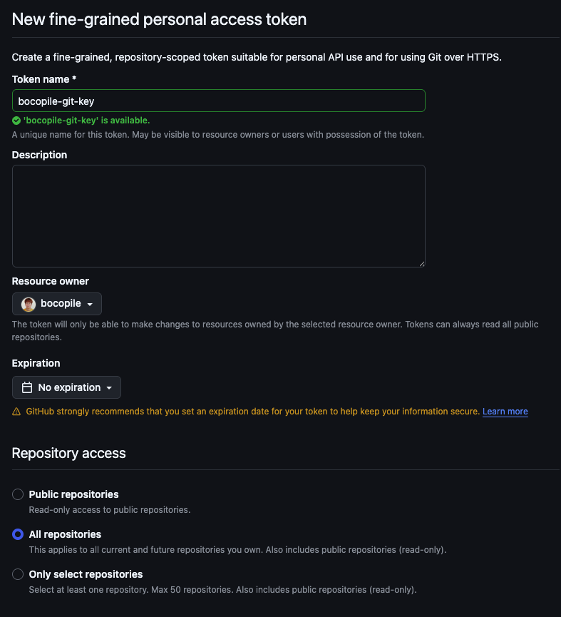 Git Repository에서 클론을 받기 위해서는 GitHub 토큰 생성이 필요합니다.
