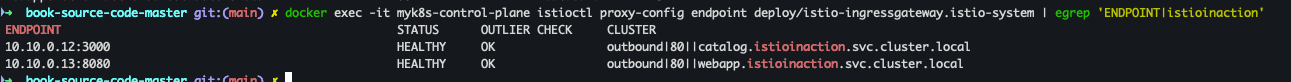 docker exec -it myk8s-control-plane istioctl proxy-config endpoint deploy/istio-ingressgateway.istio-system | egrep 'ENDPOINT|istioinaction'