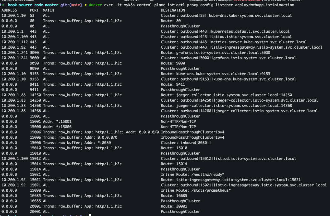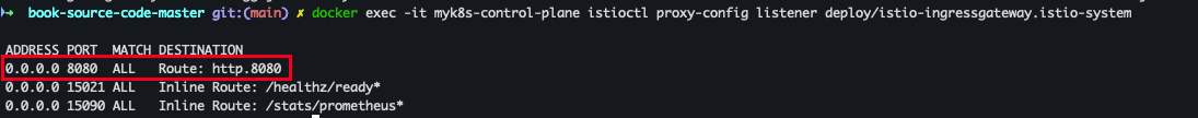 docker exec -it myk8s-control-plane istioctl proxy-config listener deploy/webapp.istioinaction