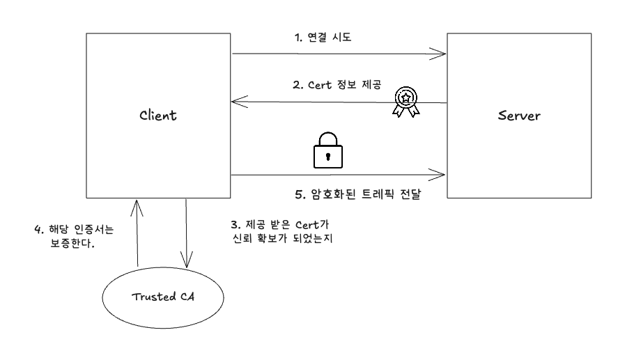 서버는 해당 인증서가 신뢰할 수 있는 CA에 의해 서명되었는지 확인 한다.