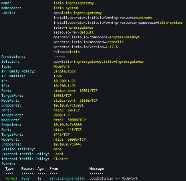 KUBE_EDITOR="vi" kubectl edit svc istio-ingressgateway -n istio-system