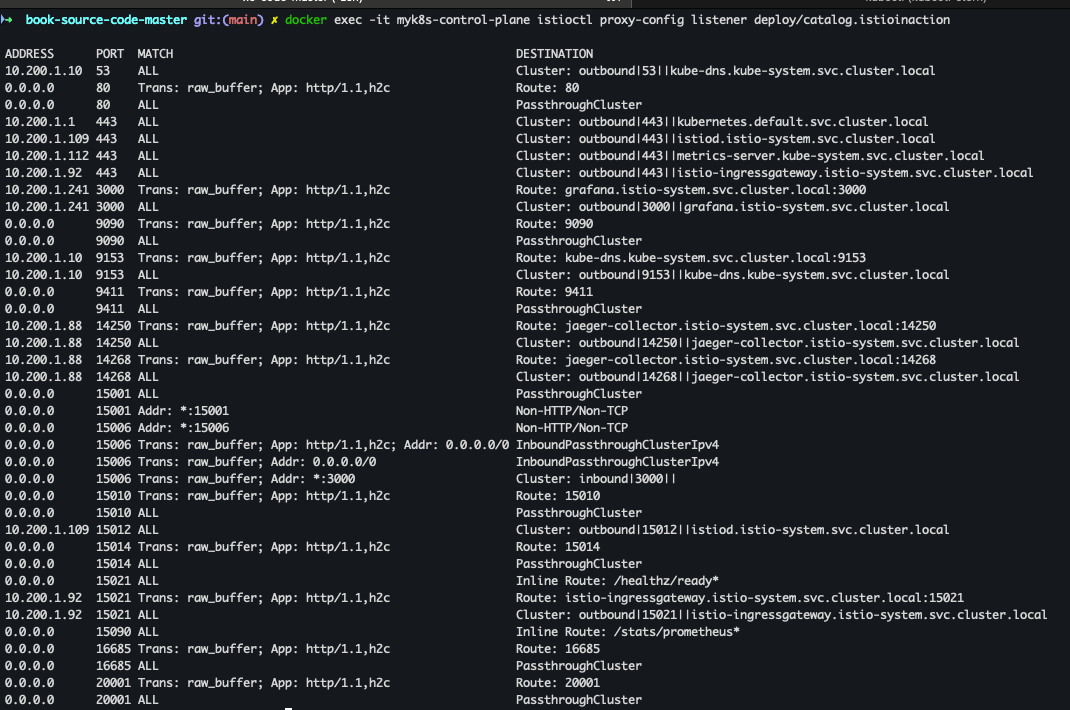 docker exec -it myk8s-control-plane istioctl proxy-config listener deploy/catalog.istioinaction