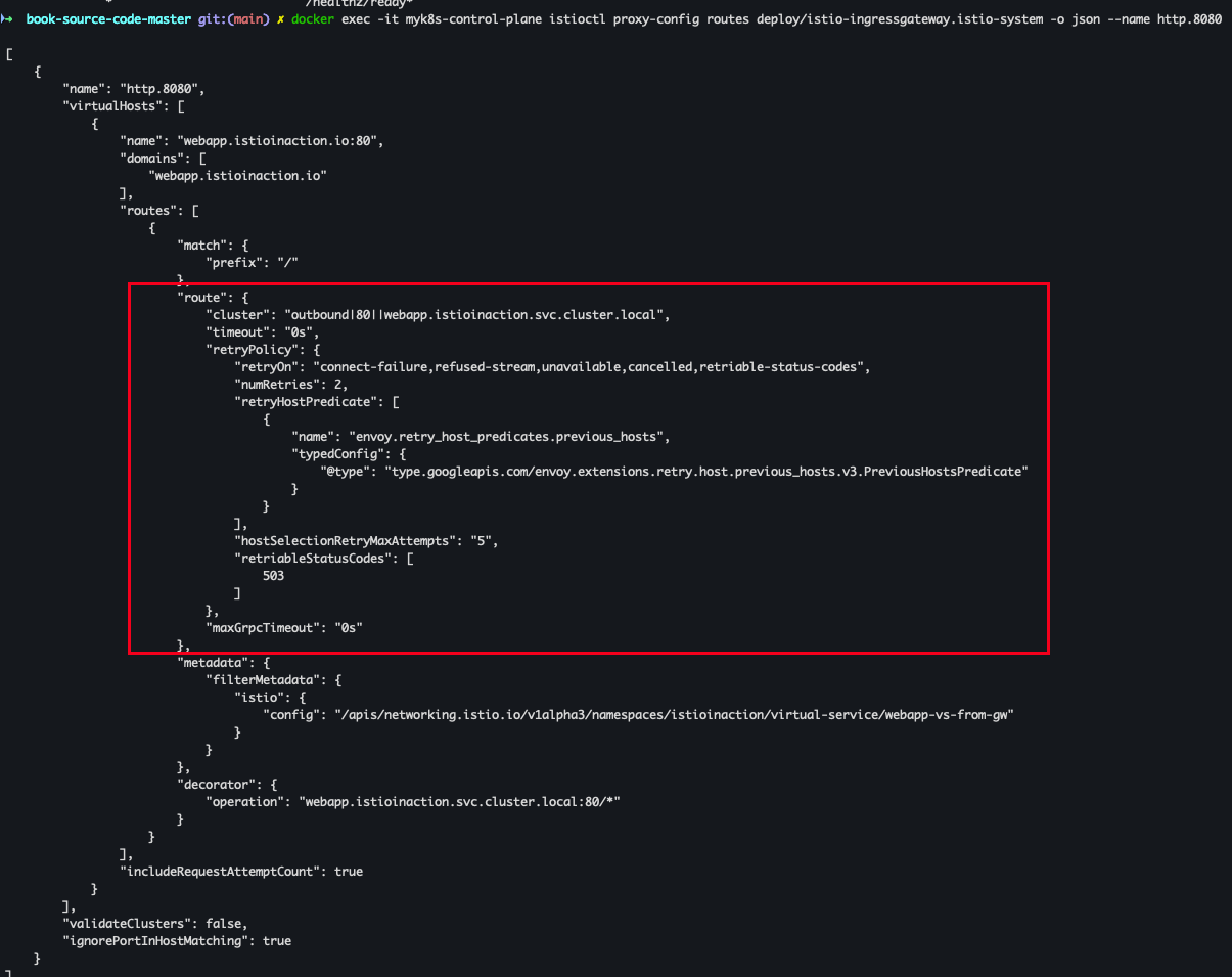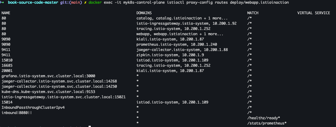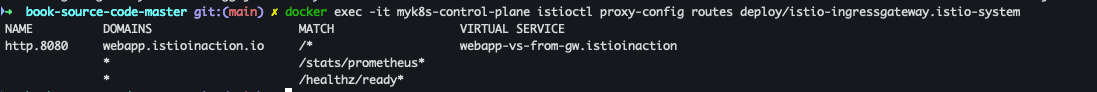 docker exec -it myk8s-control-plane istioctl proxy-config routes deploy/webapp.istioinaction