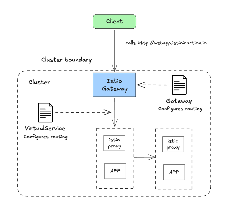 webapp.istioinaction.io 로 향하는 트래픽에만 적용 하도록 설정이 필요