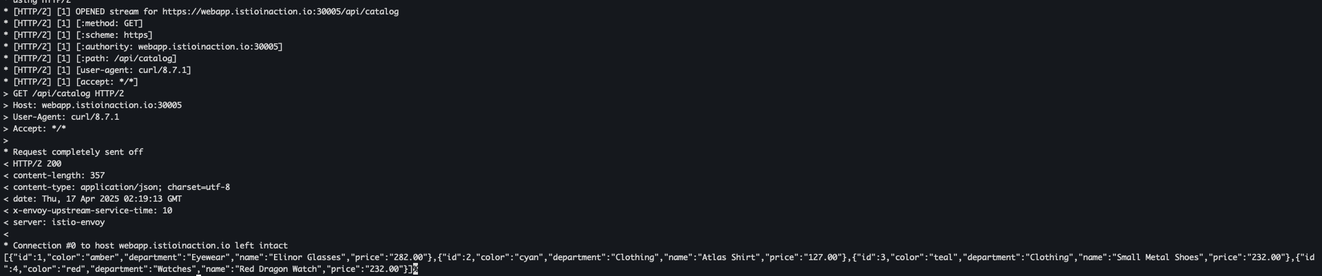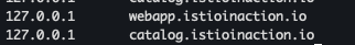 echo "127.0.0.1 catalog.istioinaction.io" | sudo tee -a /etc/hosts