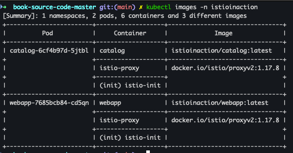 kubectl images -n istioinaction