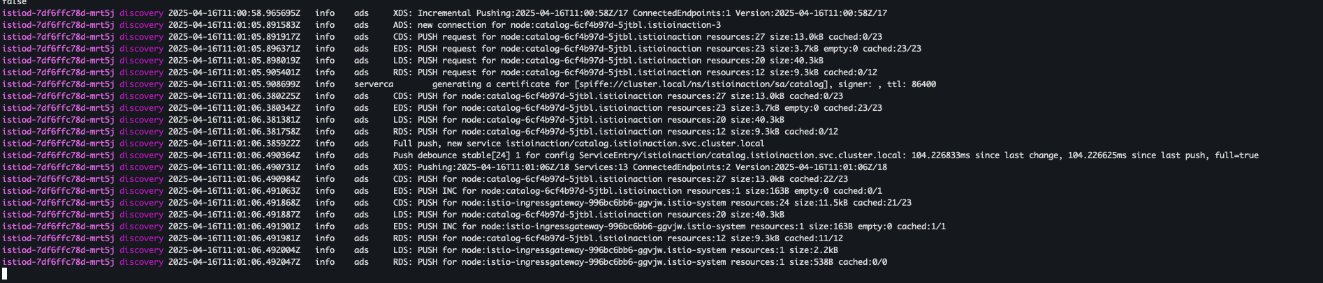 kubectl apply -f ch4/coolstore-gw-mtls.yaml -n istioinactionkubectl stern -n istio-system -l app=istiod
