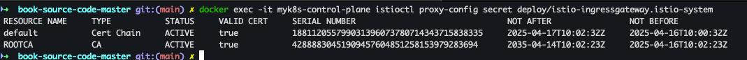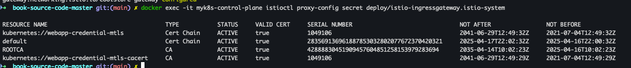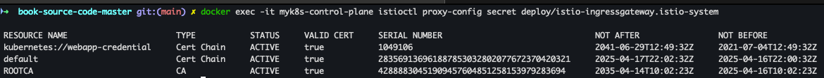docker exec -it myk8s-control-plane istioctl proxy-config secret deploy/webapp.istioinaction