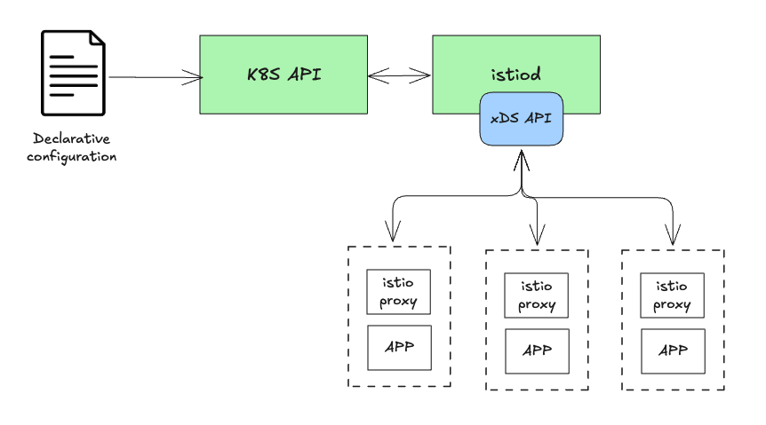 - socket_address: { address: 127.0.0.3, port_value: 5678 }Istio의 경우 ADS를 통해 전체 설정을 일관되게 관리합니다: